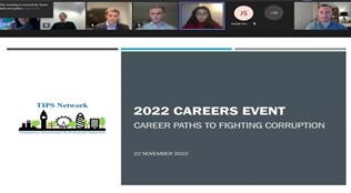 On 22 November, the TIPS Network hosted its third annual careers event with a distinguished panel who shared their experiences across investigations, law, journalism and corporate compliance. In break-out rooms, participants engaged with each panel member to discuss how they would tackle corruption and what needs to change, such as the need for stronger legislation, enforcement and ethics on the part of companies.